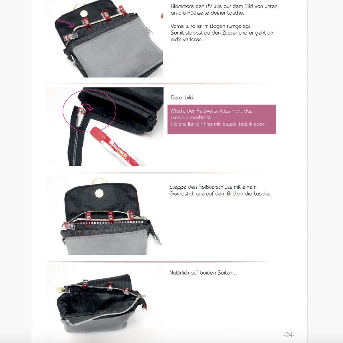 Die bebilderte und detaillierte Anleitung führt dich Schritt für Schritt durch den Nähprozess – auch wenn du noch nicht viele Taschen genäht hast.